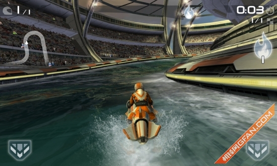 激流快艇2是Android平台上的第一款水上摩托快艇比赛游戏,其设计原型来自于XBOX360上的Hydro Thunder Hurricane(飓风迅雷赛艇)。这款游戏具有逼真的水的物理特性,比如实时光反射和浪花等,以及华丽的高分辨率的快艇和环境。