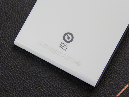 背部上方中间部位由上至下分别是降噪麦克风、主摄像头以及双LED补光灯,同时由于原点2代采用是十分成熟的索尼IMX214感光元件,所以摄像头部分并没有凸起。在机身厚度仅为7.7mm的基础上,原点这样的设计还是非常不错的。而在机身背面下方则是原点的LOGO,以及网络制式与一些标示信息。