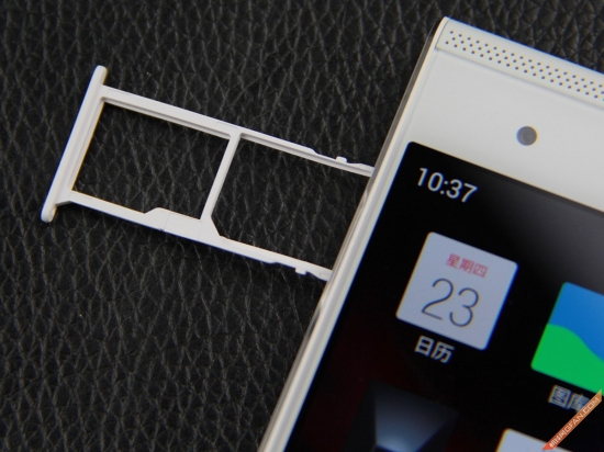 而在机身左侧则是拥有一个microSIM卡槽,虽然原点2代不能打开后盖,但原点还是在microSIM卡托上细心的设计了microSIM卡槽与microSD卡槽集合在一个卡托上。而在网络制式方面,原点2代共分为移动4G和联通4G两个版本,而我们今天所评测的则是移动版本。