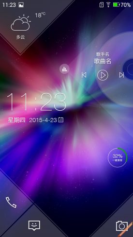 系统方面,原点手机2代采用了由Android4.4.4深度定制的ChangeUI操作界面,其中在系统界面中最为奇特的就一定要数ChangeUI的桌面设计了,在桌面左右滑动时,我们可以看到不同的界面,比如向右滑动时为一个新闻瀑布流的界面。而向左滑动则是另一个类型的聚合类界面,在这个界面中,包含天气、播放器、电话、短信等等一系列功能,几乎是将手机内我们日常需要的信息类应用都集合在了一个界面之中,这样的设计对于我们日常查看消息自然也是在方便不过了。