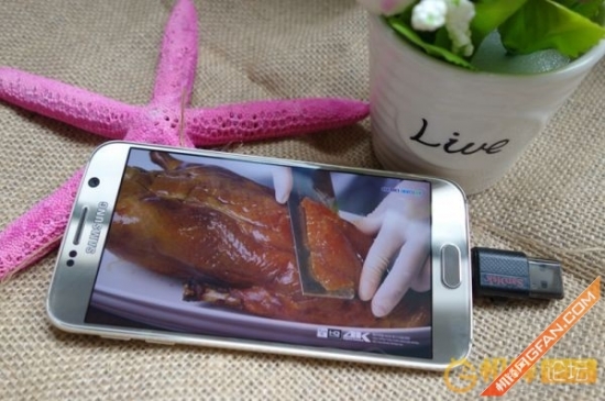 2K分辨率的Super AMOLED屏幕,用来看电影是极爽的,插入OTG U盘,这下出门也不用带平板来打发时间了,以前的水果16G,要藏几部电影是不可能的任务。