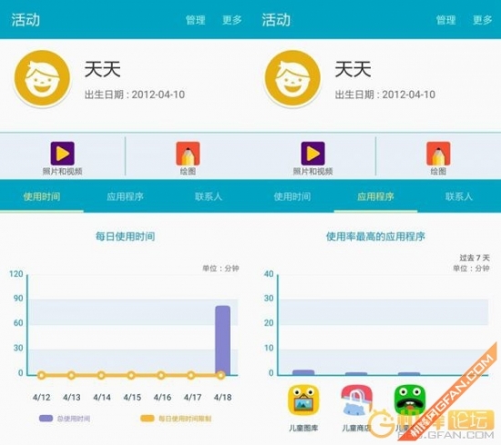 家长可以随时查看孩子玩手机的时间和玩了那些应用,管理很到位。