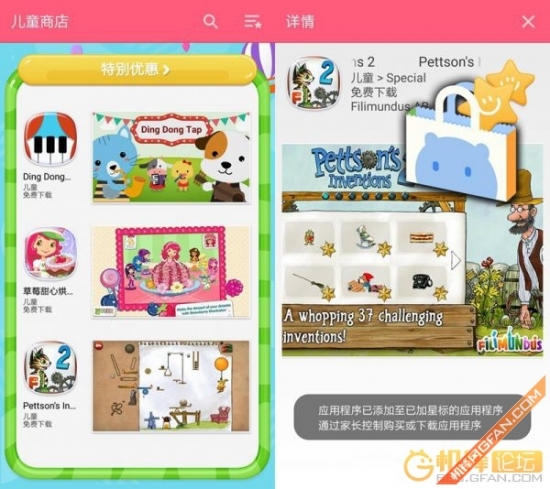 孩子有着孩子的世界,在儿童的App商店中,有着许多儿童的游戏,不过孩子要下载这些App的话是需要家长同意的,自己只能添加到收藏中去。家长可以通过这样的方式和孩子沟通,知道孩子需要什么,在想什么,可以作为奖励。