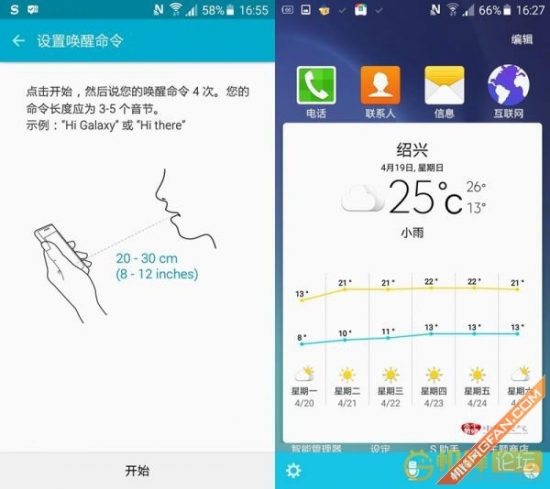 S6中有一个S Voice应用,功能和Siri一样,都是提供日常使用辅助。虽然在调戏S Voice的时候,给出的答案没有Siri来得有趣,不过日常基本操作都没有问题,问个天气,找个饭店,打打电话,发发短信还是非常不错的。可喜的是S Voice带有语音唤醒功能,就算手机没有使用,只要说出唤醒命令就可以唤醒该功能,这点比Siri要便捷不少,特别是双手不方便操作的时候会实用不少。