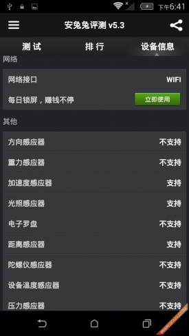 安兔兔评测AnTuTu Benchmark是一个专门给Android系统的手机、平板电脑硬件跑分的软件,它能一键运行完整测试项目,通过内存性能、CPU整数性能、CPU浮点性能、2D、3D绘图性能、数据库I/O、SD卡读、写速度等多项性能测试,并对手机的整体和单项硬件性能做出评分,同时上传分数并查看该设备在世界的排名。