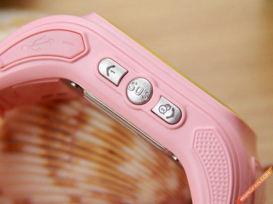 按键细节方面,阿巴町爱随行智能手表的左侧为三颗按键,从上到下,分别为:亲情1键、SOS键以及亲情2键。而紧挨着亲情一键的上方,则是隐藏式USB充电插口。