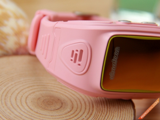 在细节设计上,我们可以看到,阿巴町爱随行智能手表采用了传统的电子表类型设计,表盘为长方形,表带则为类肤质材质,让儿童穿戴起来,更加舒适。而表盘上方,则是外置扬声器,下方则为喊话使用的mac孔。方便儿童与家长进行通讯使用。