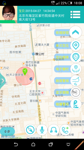 电子栅栏这个功能也非常实用,家长可以再APP地图上给孩子划定一个安全区域,当孩子走出安全区域时,手机端会受到报警提示,以启迪警示作用。