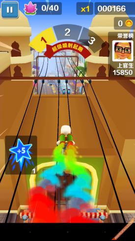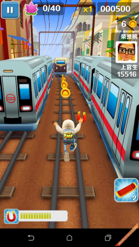 地铁跑酷是Kiloo Games公司开发的一款iOS、Android平台的益智休闲手机游戏,于2012年10月发行。该游戏是一款堪比神庙逃亡的经典跑酷游戏,在朋克的道路上不断奔跑吧!游戏的画面绚丽精致,色彩繁多让人感觉很舒服,在操作上非常顺畅,并且干净利落。通过简单的向上划,向下划,向左向右划来躲避障碍和迎面而来的火车,帮助主人公躲避脾气暴躁的警察和他的狗的追捕。在空中也可以左右改变方向哦,还可以通过双击屏幕调出滑板,在有限的时间里相当于增加一次生命。游戏中还包含了如弹簧鞋等多种道具,让游戏更具趣味性,竭尽全力冲刺!躲避迎面而来的火车!