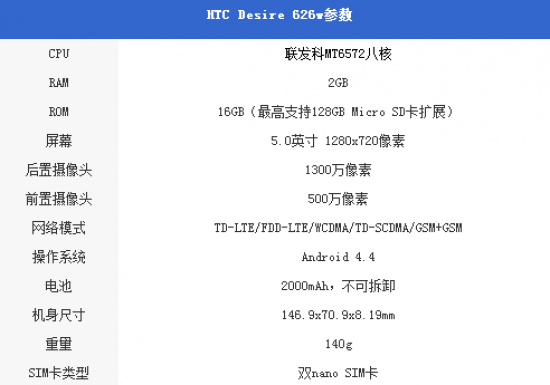 很多网友对于HTC推出的千元级手机多少有点不放心,因为此前HTC很少推出入门级产品,正好小编的职责就是对手机进行评测,通过我们的评测,相信会给各位一个答案。评测开始之前我们不妨了解一下Desire 626的配置信息。