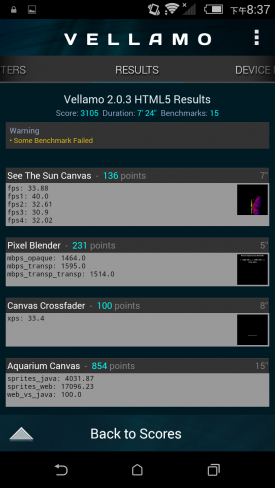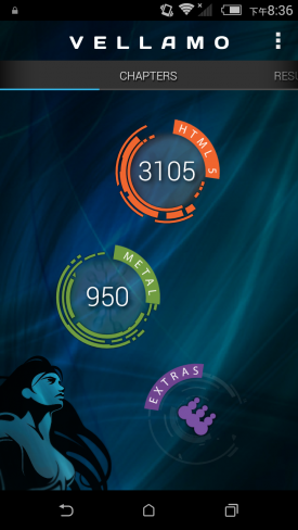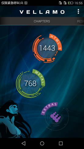 Vellamo是由Qualcomm(高通公司)开发的一个基准测试应用(类似于Neocore),它可以让你对手机浏览器的性能及稳定性进行测试,包括像Java脚本性能、渲染、联网和用户界面等。该工具的结果同样包括多个子项,但我们只取总成绩,分数越高则表明手机对浏览器的优化程度越高,网页浏览体验更好。