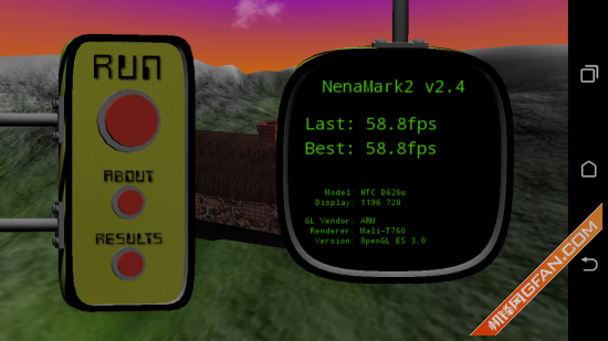 NenaMark2是一款面向Android智能手机的图形处理能力测试工具,通过一段视频Demo的播放测试手机图形处理单元的硬件加速能力。