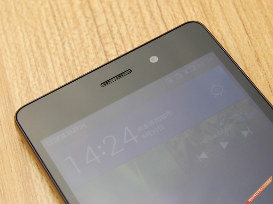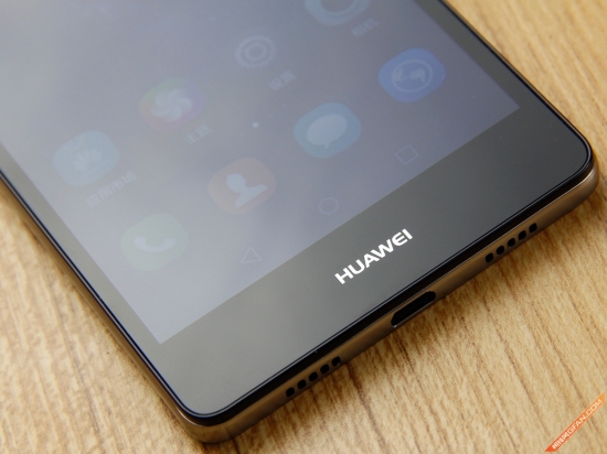 正面上部设计比较简单,听筒被设计到顶部正中间,而在听筒的右侧则是该机的前置摄像头。在机身正面下方可以看到熟悉的华为LOGO,虚拟按键被设计在了屏幕内部。