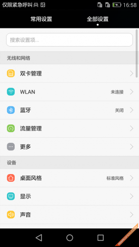 华为P8青春版依然采用一级菜单设计,大部分操作都能在主界面进行。屏幕内的虚拟按键也可以通过设置进行自定义更改。