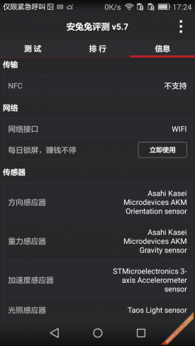 安兔兔评测AnTuTu Benchmark是一个专门给Android系统的手机、平板电脑硬件跑分的软件,它能一键运行完整测试项目,通过内存性能、CPU整数性能、CPU浮点性能、2D、3D绘图性能、数据库I/O、SD卡读、写速度等多项性能测试,并对手机的整体和单项硬件性能做出评分,同时上传分数并查看该设备在世界的排名。
