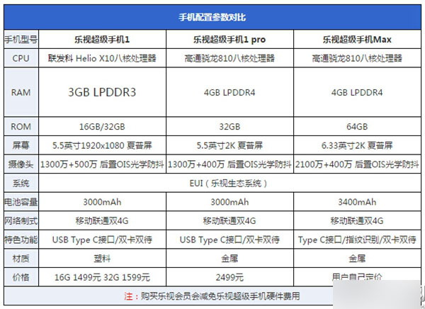 乐视手机1Pro、乐视手机1和乐视手机max详细配置