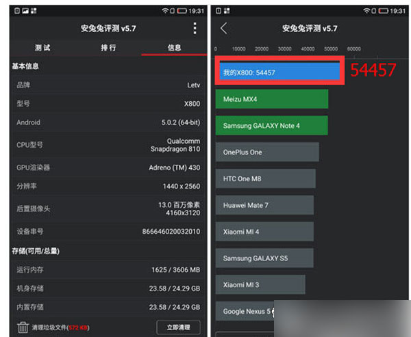乐视手机1Pro安兔兔跑分5.4万