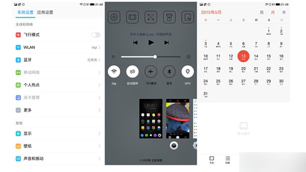 设置、快捷栏、日历