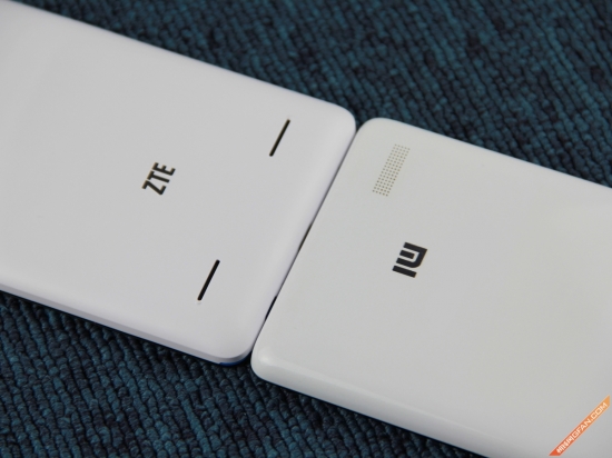 机身背面(左:红米Note 4G、右:中兴V5 Max)