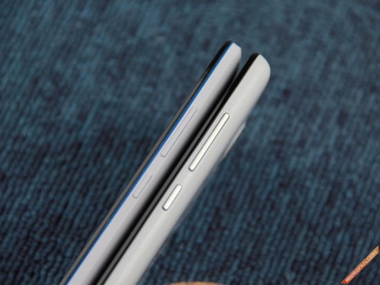 说完了手机正反两面,我们再来看一下两部手机在侧面的设计。首先中兴V5 Max与红米Note 4G都是统一将音量键与电源键放置在手机右侧。在按键手感方面两部手机都做的足够出色,不过在配色方面,小编认为中兴V5 Max白色按键与机身整体配合更加协调。而红米Note 4G的银灰色按键则略显突兀。