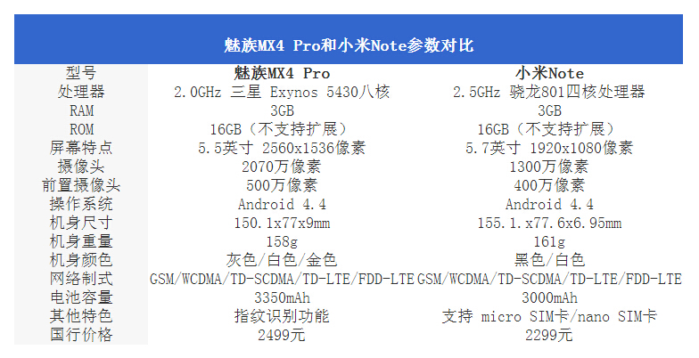 魅族和小米在去年年底和今年年初相继推出了魅族MX4 Pro和小米Note旗舰产品,均在此时完成了低、中、高的三大产品线布局。两款产品的推出,把2000+元阵地的热情再次点燃。同样的高配置以及不断较量的价格,这绝对又会掀起一场硬战,自然也少不了将两款产品进行一番对比。对于很多选机用户而言,都可能会纠结魅族MX4 Pro和小米Note哪个好的问题,今天就通过多方面对比两部手机的差异化。
