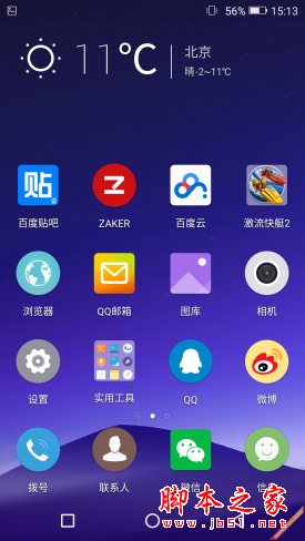 金立ELIFE S7在锁屏界面向上滑动可以解锁,而在桌面上向下滑动则回到锁屏页面。整个系统的图标形状方圆相间,多彩+扁平化营造出时尚的感觉。