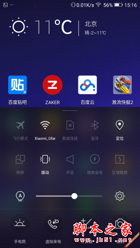 金立ELIFE S7下拉菜单只显示通知类消息,并可以自定义开关应用的通知。而常用设置快捷键需要从上至下拖动开启。