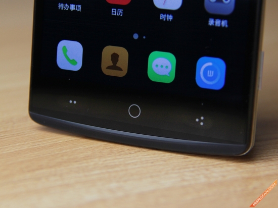 机身正面下巴的部位从左至右分别多任务功能键、Home键以及返回键,虽然是标准的Android手机按键布局,但值得一提的是,小哇手机的多任务功能键以及返回键是采用了点阵来表示,而Home键则是用小圆环来体现,在点触按键时,按键底部的LED灯会亮起,用户不用担心看不到按键的情况。