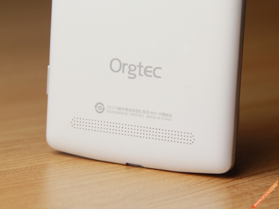 机身背面下方则是扬声器的位置,在扬声器上方,印有橙石科技的英文LOGO,同时标注了手机所属的网络制式,而小编手中这一台便是支持TD-LTE 4G网络的手机。