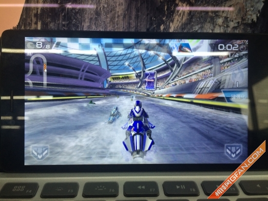 在游戏测试中,我们选用了对于图形处理要求较高的《激流快艇2》作为测试应用,在整个游戏的过程中,游戏加载速度以及运行上,小哇手机都表现的十分流畅。整个游戏运行过程中间并没有出现丢帧或者卡帧的情况,游戏画面也十分顺滑,没有明显锯齿感。