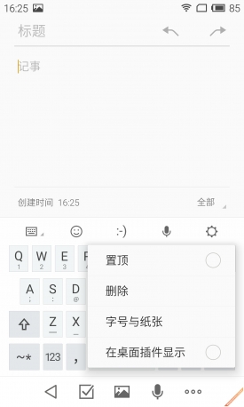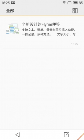 除了卡片式、相机等升级之外,Flyme 4.5在细微功能方面,也进行了改善,比如常人不曾使用的便签功能。在改变方面,Flyme 4.5将便签的的选项栏从左边移至到了中间位置。此外,分类标签方面,也增加了不同颜色作为提示,方便用户辨识。最后一项功能就是增加了便签的桌面插件显示选项,更方便用户使用。