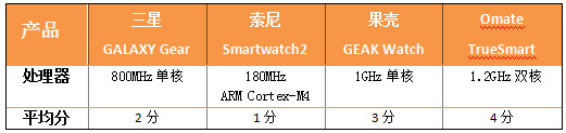 编辑点评:依照目前已曝光的处理器参数来看,Omate TrueSmart的处理器性能最高,果壳GEAK Watch和三星GALAXY Gear的处理器性能虽然有所降低,但差距并不显著。在外观上看起来不错的Smartwatch2处理器性能有点惨不忍睹,只配备了180MHz ARM Cortex-M4处理器。