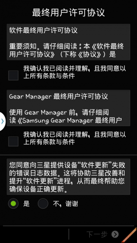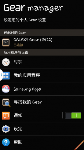 只能与固定的几款设备配合使用虽然让三星GALAXY Gear的受众大幅降低,但是也让连接变得格外简单。用户所需要做的仅仅是打开手机的蓝牙和NFC功能,拿起GALAXY Gear的充电背壳按照手机上全中文的指示说明就可以轻松完成连接。So Easy!