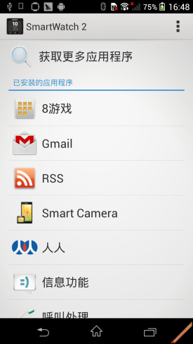 索尼Smartwatch2所需要的全部应用都需要通过手机端的软件进行下载,智能手表更多的是以第二屏的方式将内容呈现给用户,本身的处理需求并不高。不过在软件应用数量上,索尼Smartwatch2是目前最少的一个,不但数量少,而且应用也并不全面,仅有的几项应用很难满足时尚用户的需求。