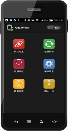 果壳GEAK Watch虽然可以兼容全部Android手机,未来还可以兼容苹果手机,但是在连接方式上却并不简单,需要用户自行去官网下载对应的手机或电脑的安装包,为手机进行单独安装后,才可以开启蓝牙、WiFi进行与手机的绑定,略显繁琐。