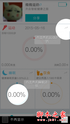 通过包装盒里的说明书或者是去Fii的官网,用户就可以下载手表配套使用的APP,下载很是方便。不过后来问题也来了,首先是从介绍界面可以看到Fii对APP设计的不用心,比如睡眠界面圆形标识的错位,指示文字图标与圆形标识重叠。此外最让人困惑的是,第一次打开APP注册完帐号之后,就直接进入到APP的主界面,难道做完前期的准备工作之后不是引导用户连接自己的智能手表吗?