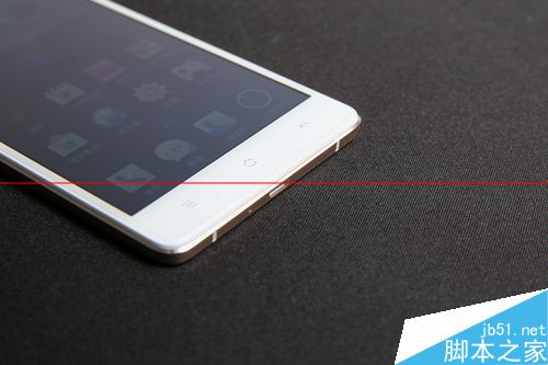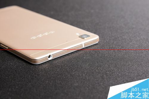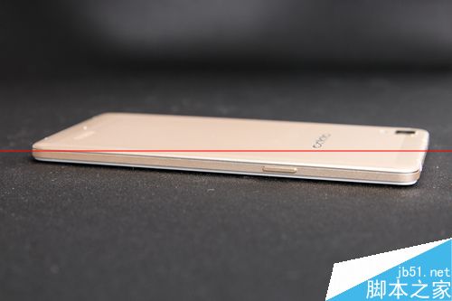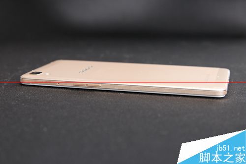 从侧边可以明显的看到,金属边框并没有完全包裹手机,留下的塑料层可保屏幕无忧。另外可以看到的是,R7的音量键和锁屏键是分开在机身两侧的。OPPO所生产的多数手机都是这样设计,刚开始使用可能会有些不习惯。