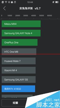 安兔兔40000+的分数在现在这个旗舰遍地走的年代显然有些不够看,但分数只是分数,实际使用上说,R7的系统体验非常流畅,得益于3GB的运存,后台程序较多的情况下也可保证无卡顿。