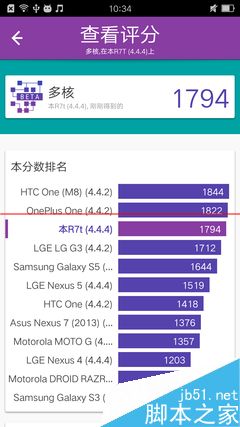 vellamo浏览器以及多核运行成绩基本与去年的旗舰手机等同。今年各家新推出的旗舰手机能比上代快多少呢?实际上不排排坐比较的话也不会很明显的感觉出来,所以,R7的性能完全够用。