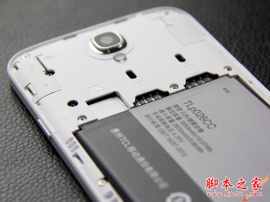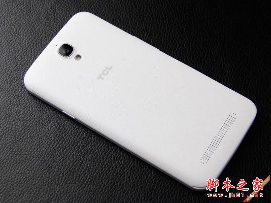 TCL ono P620M的机身背面设计非常简洁,白色的塑料背壳质地十分厚实,背部腰线轻微的弧度设计增加了手机与手掌之间的贴合程度。背部中间偏上的部位是TCL的LOGO,手触摸时还能够感觉到LOGO所带来的纹理感。