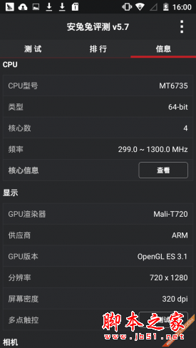 | CPU | 1.3GHz 联发科MT6735四核 |