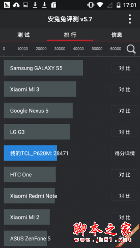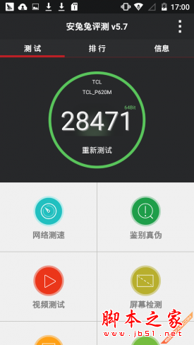 接下来使用跑分软件来对TCL ono P620M进行跑分测试,其目的主要是希望将手机的性能加以量化,可以让用户更加直观的了解这款手机的实际性能情况。