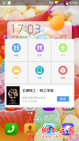 在主页可以看到便捷生活选项,在这里可以直接购买电影票、充话费、买彩票,查看美食、出行信息。