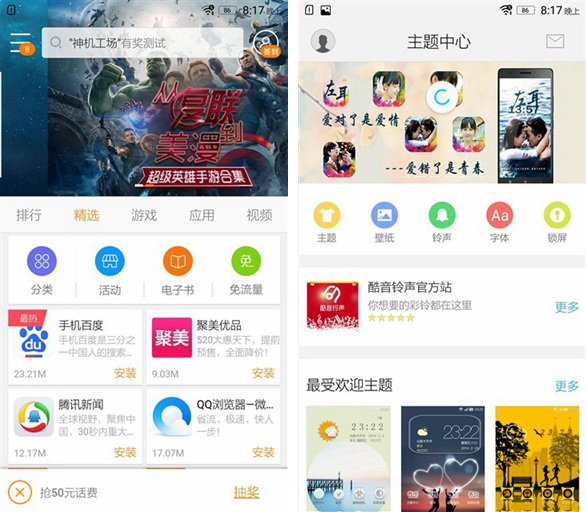 系统中还内置了联想的“乐商店”以及“主题中心”,它们会根据用户的喜好进行应用和主题推荐,并且主题质量都很高。