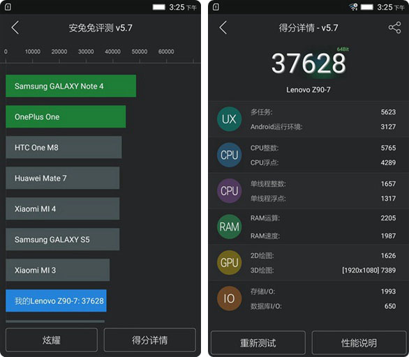 对于主打拍照的手机来讲,性能方面可能不是VIBE Shot最注重的因素,但拥有64位处理器的它仍处在智能手机中的主流水平。我们先来看一下它的参数: