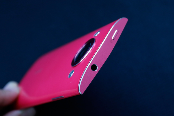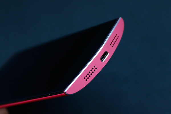 背部就明显缓和一些,弧度设计,边缘部分收窄,比较贴合手掌;后盖材质为亮光塑料,手感细腻,不过易沾染油污。后置镜头十分显眼,直径接近1.5mm,周围由金属环保护,值得一提的是后置两颗补光灯,实现自拍时的均匀补光。与之前的M2相比,M4的顶部和底部边框改为金属材质,表面磨砂处理,边缘切割抛光,更显精致。