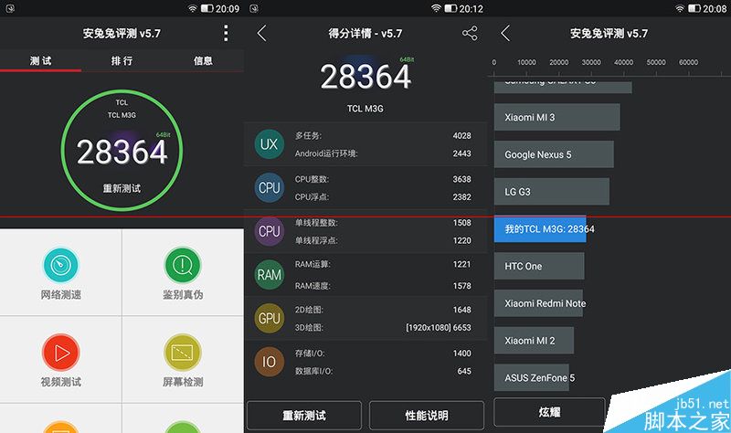 在安兔兔的跑分测试中,TCL么么哒3S的跑分成绩为28364分,整体水平接近HTC One,实际的操作体验中,系统运行相对还是比较流程的。