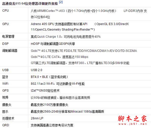 纽扣搭载了骁龙615 64位处理器,下面是615的硬件介绍