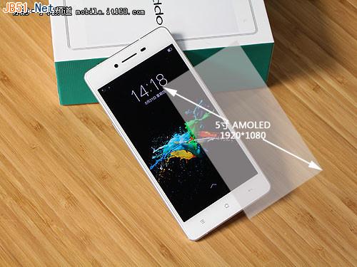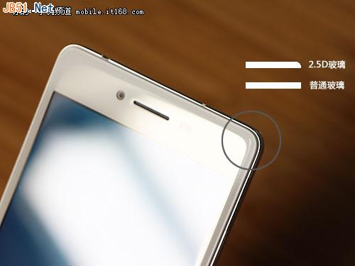 首先,正面方面,OPPO R7搭载了一块5寸AMOLED屏幕,采用了超窄边框设计,但并没有像努比亚Z9一样使用弧形加厚玻璃从视觉上掩盖边框,OPPO认为超薄机身给用户带来的握感远比“无”边框更加实用。屏幕方面,为了追求超薄机身,OPPO R7也搭载了相比于IPS更薄的AMOLED屏幕,成本更高的同时显示效果也相应提升。