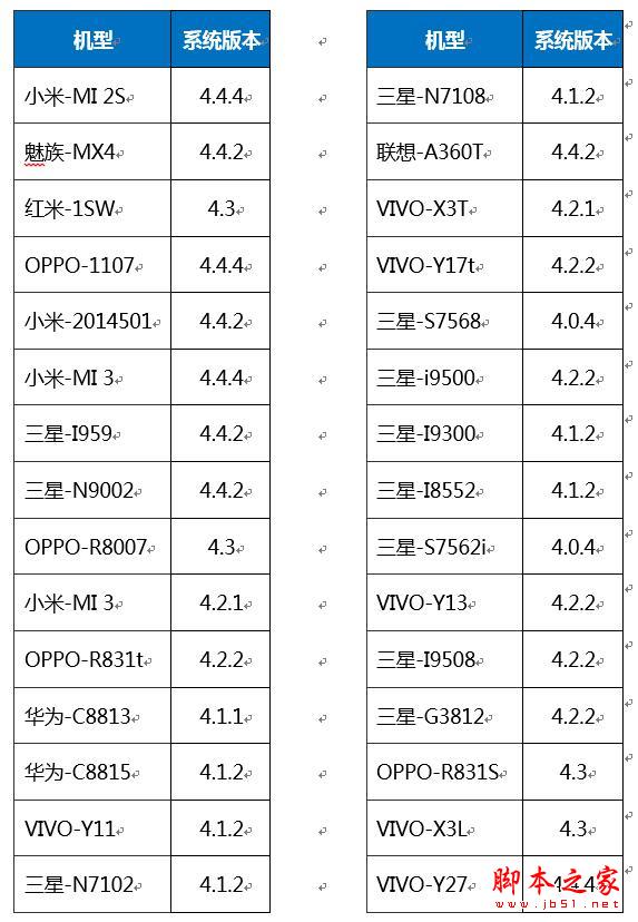 测试机型的Android版本分布: